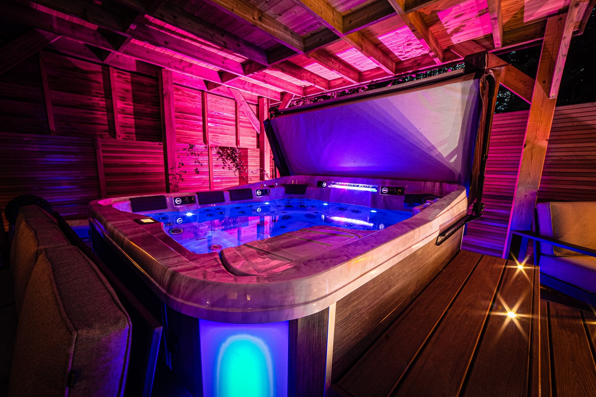 Every Artesian Elite spa is fully foamed in the space between the cabinet and the structure. Artesian use the Icenyne® brand of foam which provides a high level of insulation to help the spa retain heat. The foam conforms to all the curves and spaces providing a seamless air barrier that provides a consistent R-value to the spa.